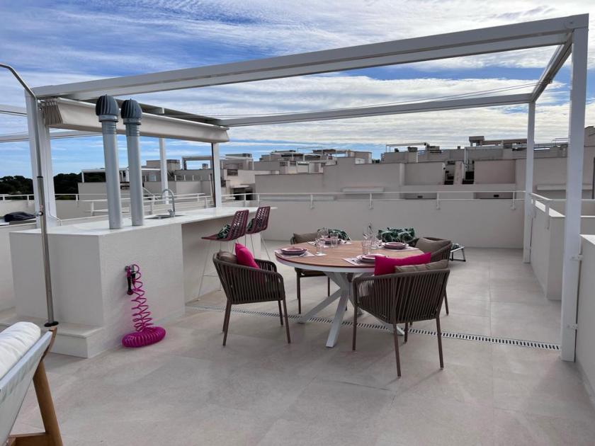 The apartment is fully furnished with a SMART APP TV, Spannish Channels, integrated air conditioning, electric motorized blinds, a balcony and a large roof terrace. The roof terrace ( also called solarium ) offers a beautiful view. This way you can enjoy the sun and the warmth in summer and winter under cover all year round.