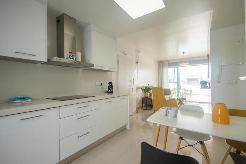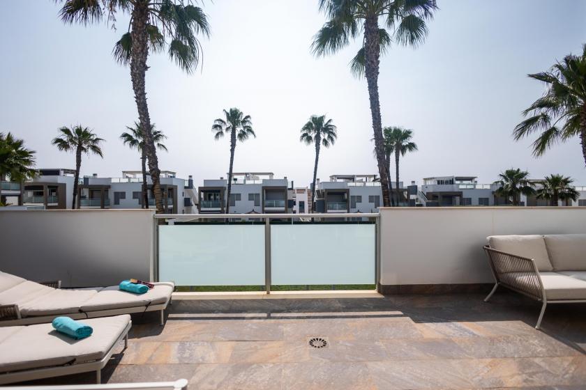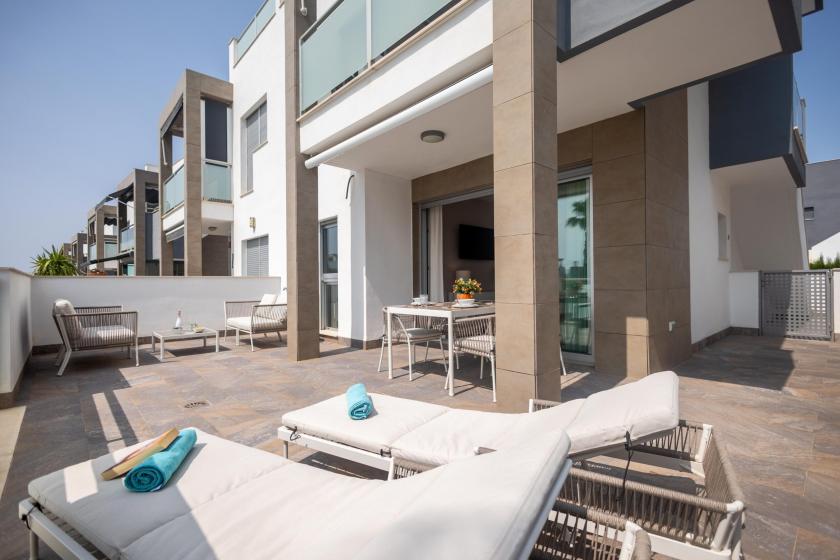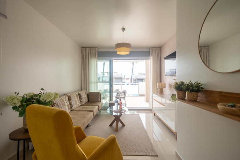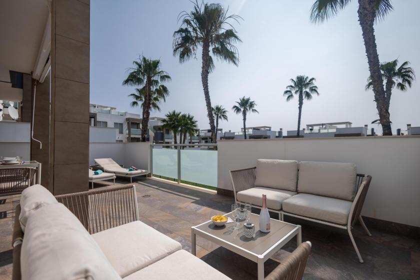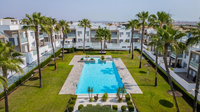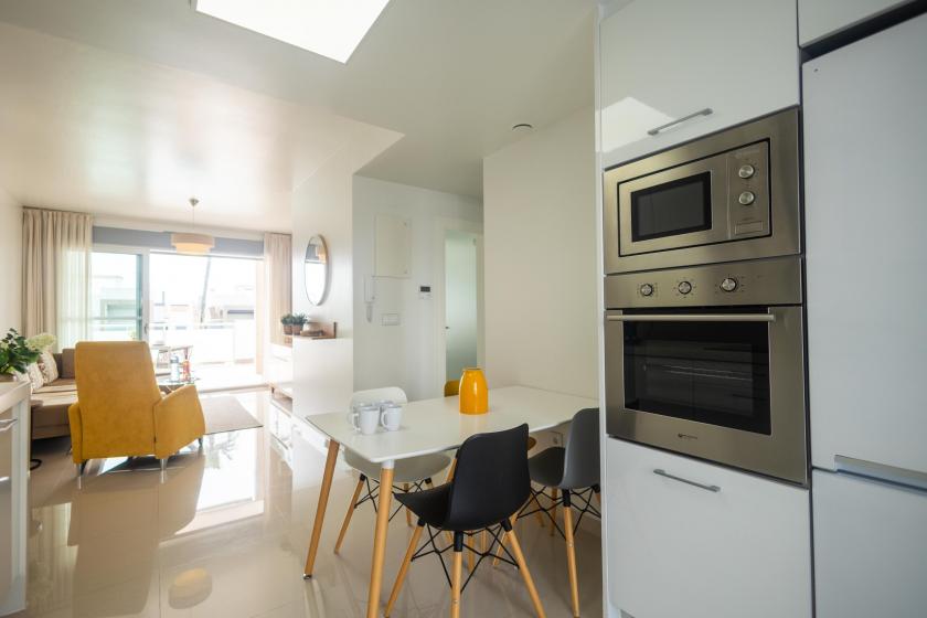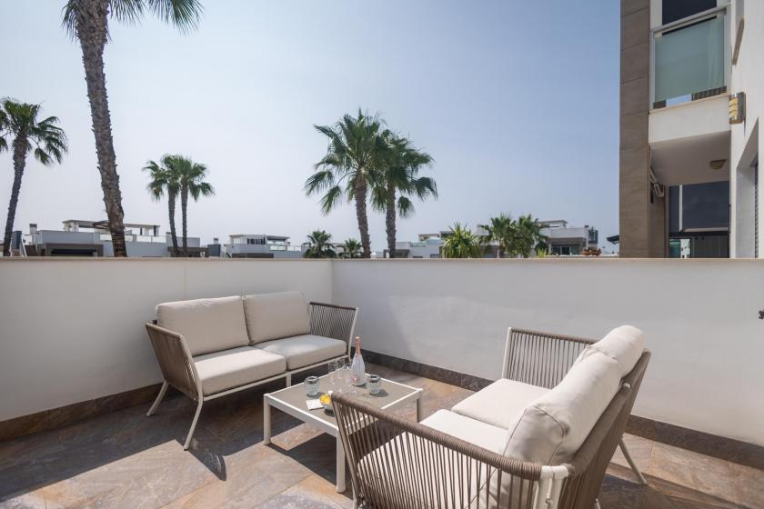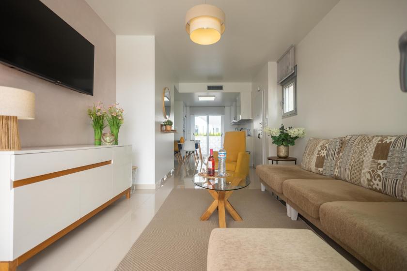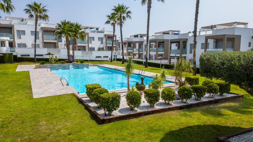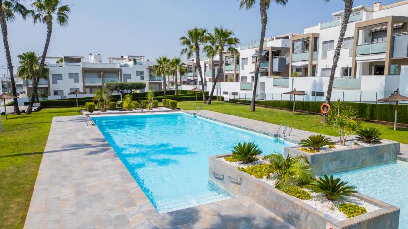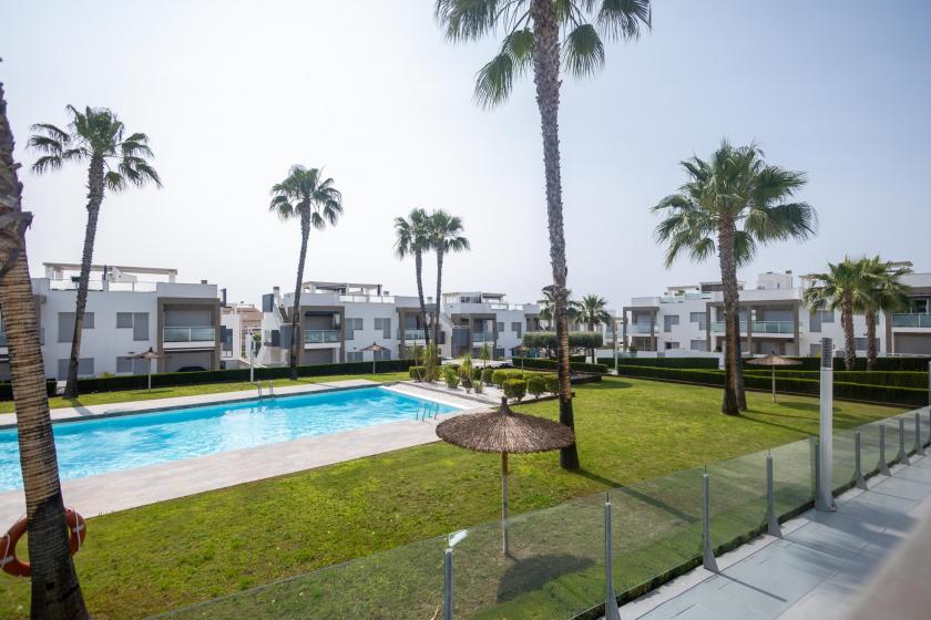 Cet appartement moderne au rez-de-chaussée dans le parc El Mirador est situé à moins de 700 mètres du centre commercial Punta Marina et à 1,3 kilomètre de la plage. Le parc commun dispose de magnifiques jardins paysagers, de plusieurs piscines, d'un spa et d'une salle de sport.