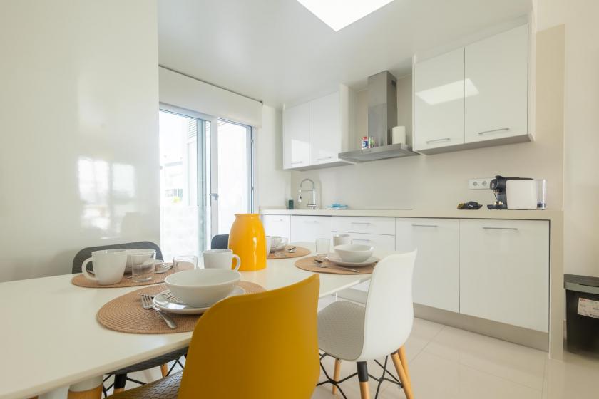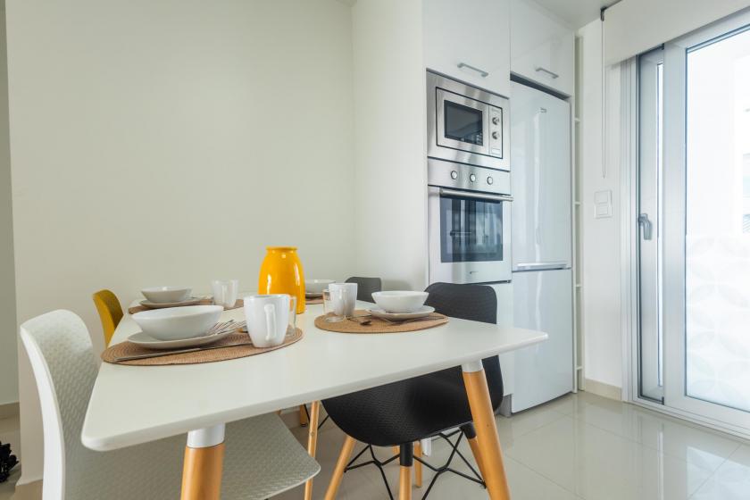 L'appartement est spacieux et décoré avec goût, avec un salon équipé d'une télévision intelligente, d'une connexion Wi-Fi et d'une cuisine ouverte entièrement équipée avec tous les appareils nécessaires, y compris un lave-vaisselle. Il y a deux salles de bains (dont une en suite) avec douches à l'italienne et deux chambres, l'une avec un lit double et l'autre avec deux lits simples, toutes avec des placards intégrés. La climatisation est disponible pour le refroidissement et le chauffage.